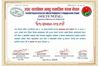 Solve Nepal extends heartfelt congratulations to all the recognized farmers and wishes them continued success and prosperity in their agricultural journey.